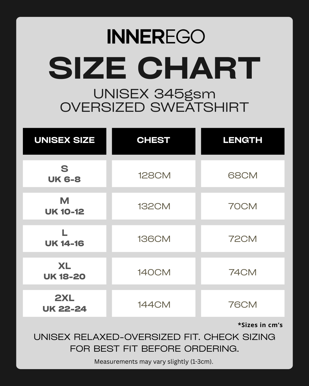 Why not Pair your Embossed Oversized Sweatshirt alongside a pair of denim jeans, chelsea boots, a INNER EGO Knit beanie and a bomber jacket for the ultimate winter spring vibe.